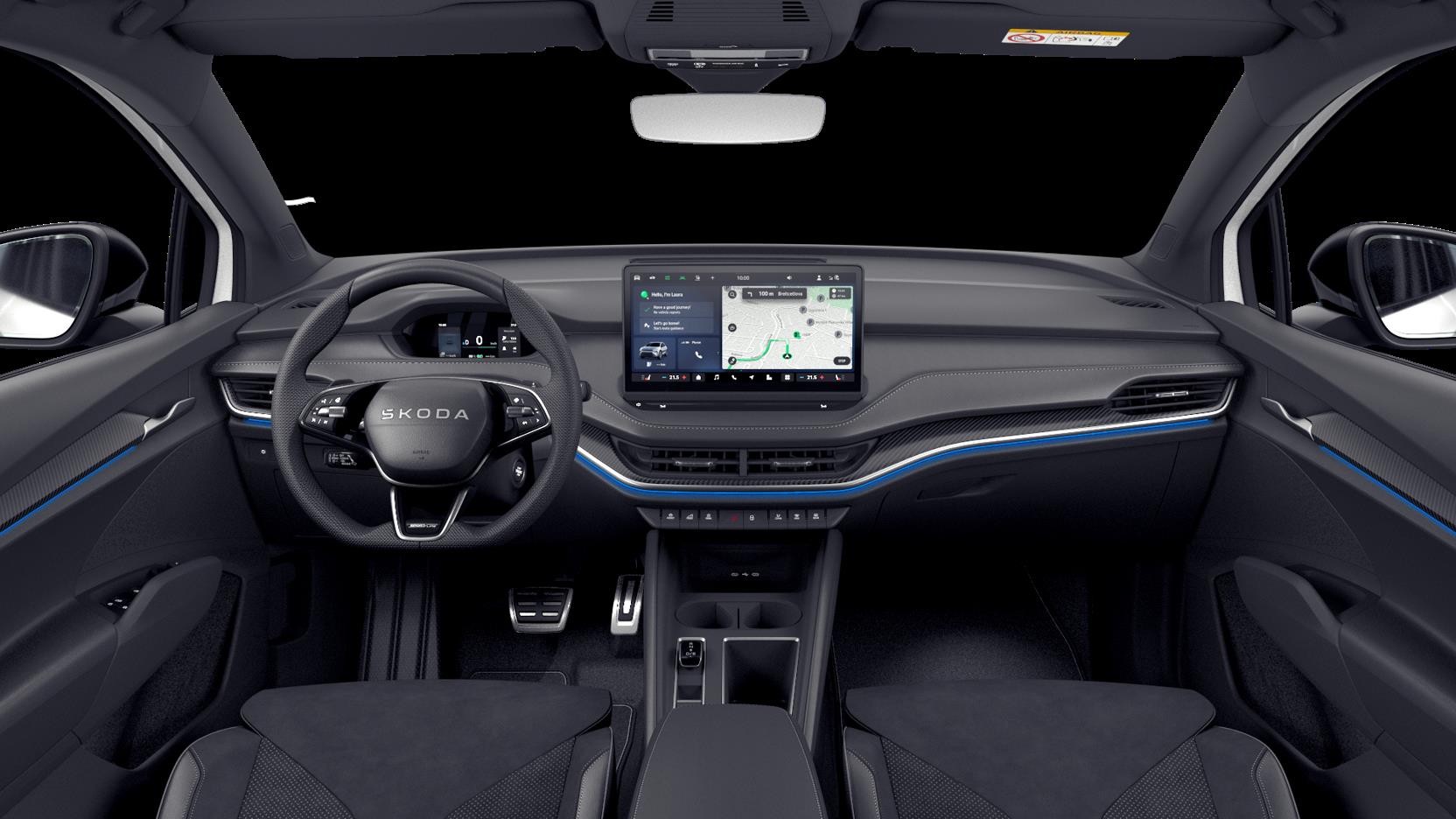 - Bez loketních opěrek u předních sedadel